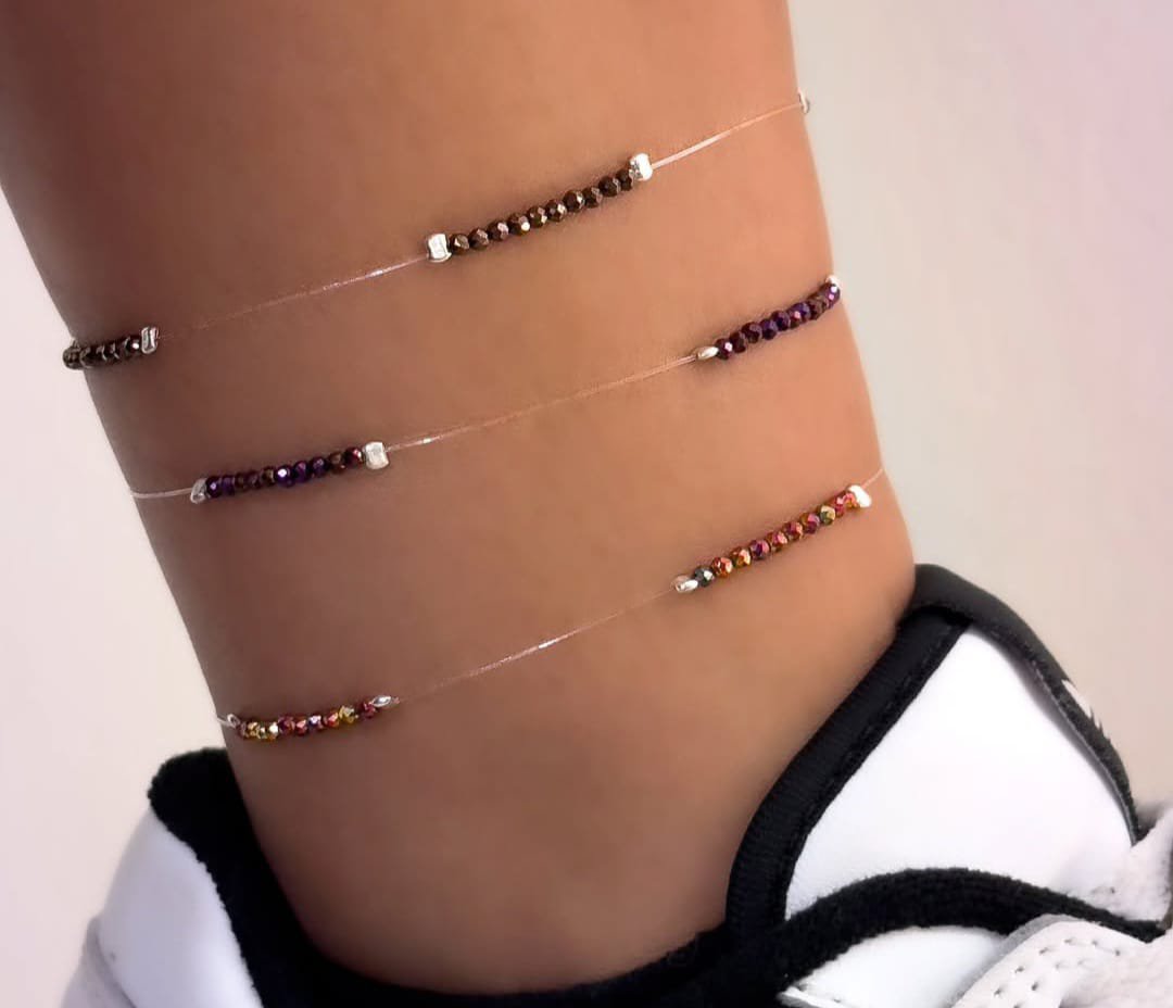Tobilleras de plata y mostacillas